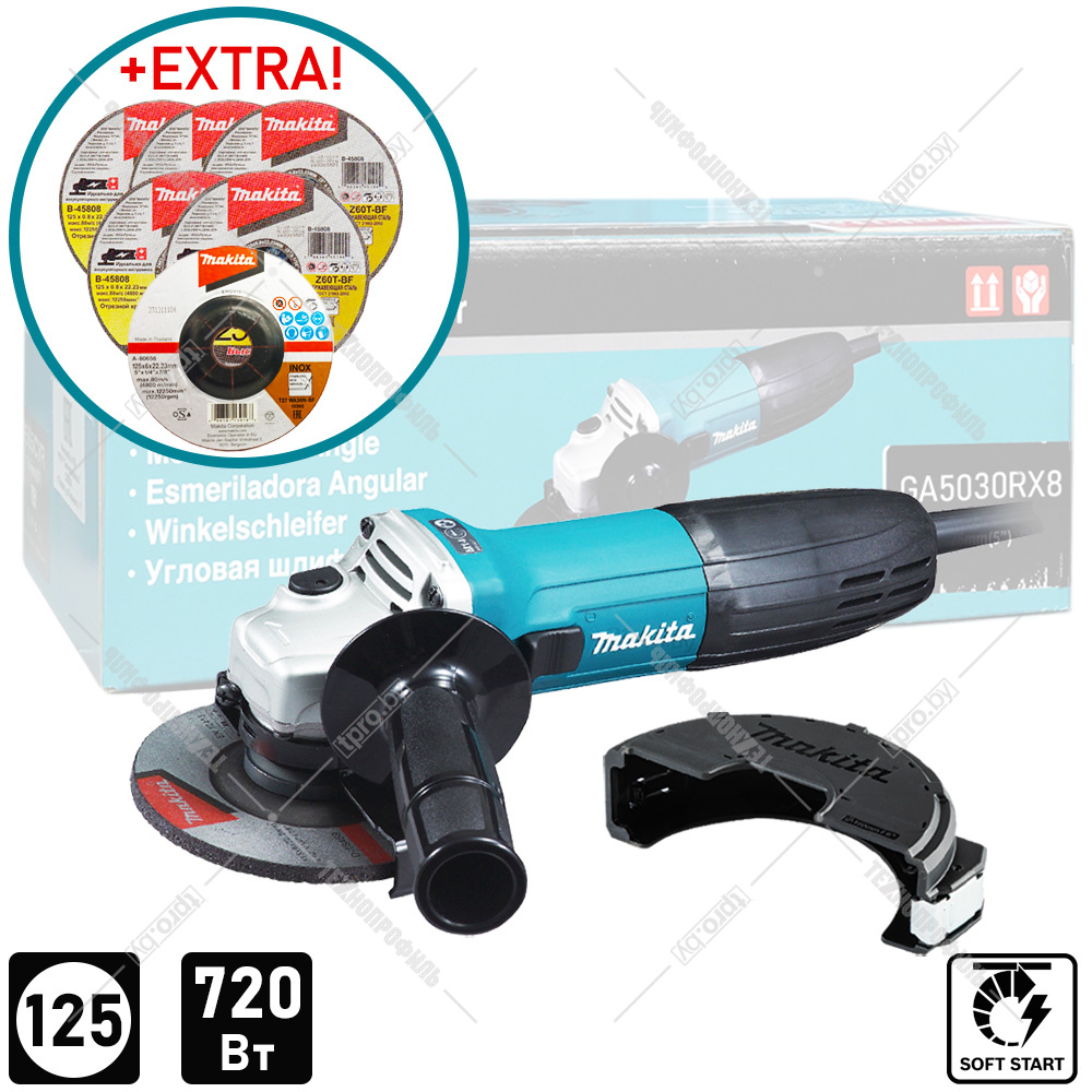 Угловая шлифмашина GA5030RX8 (GA 5030 RX8) MAKITA купить в Гродно, Минске - цена, фото, характеристики в интернет-магазине Технопрофиль